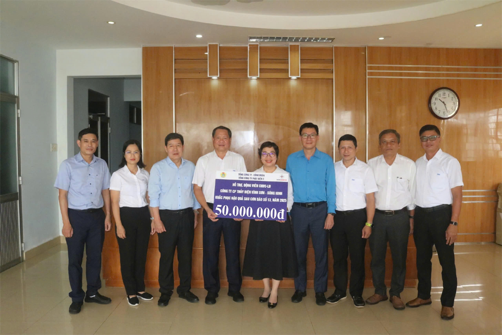 Ngày 11/11, Lãnh đạo Tổng Công ty và Lãnh đạo Công đoàn Tổng Công ty Phát điện 3 (Lãnh đạo Tổng Công ty) đã đến thăm hỏi, động viên và hỗ trợ đoàn viên - người lao động (NLĐ) Công ty CP Thủy điện Vĩnh Sơn - Sông Hinh (VSH) 50 triệu đồng góp phần khắc phục hậu quả sau cơn bão số 13, năm 2025.
